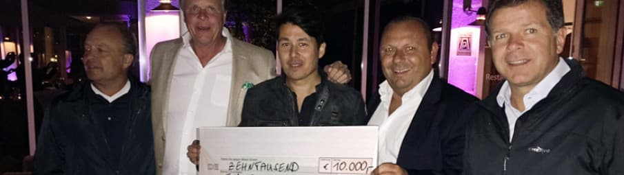 Beim Benefiz-Golfturnier *Friends4Help* konnte Prof. Kai Uwe Chow Anfang September 2015 einen Scheck über € 10.000,- entgegennehmen. Von links nach rechts: Christian Mühleck, Siggi Schneider, Prof. Dr. Kai Uwe Chow, Holger Heinze und Andreas Möller. Der Frankfurter Förderverein zur Bekämpfung von Tumorerkrankungen bedankt sich sehr herzlich!
